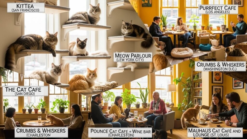 Cat cafés have officially made themselves at home across the United States. What started as a quiet trend in Asia has become one of the most joyful, heartwarming, and Instagrammable experiences for American cat lovers. Imagine sipping a latte while a friendly rescue cat hops onto your lap—or writing emails while a curious orange tabby curls up beside your keyboard.